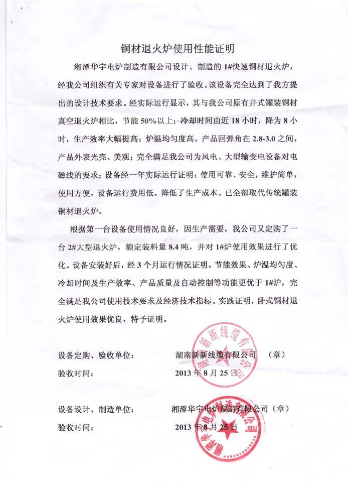 实际运行效果证明:每吨电磁线退火电耗约85度;而闷罐炉等设备电耗在每吨200度左右。节省电耗约60%。
